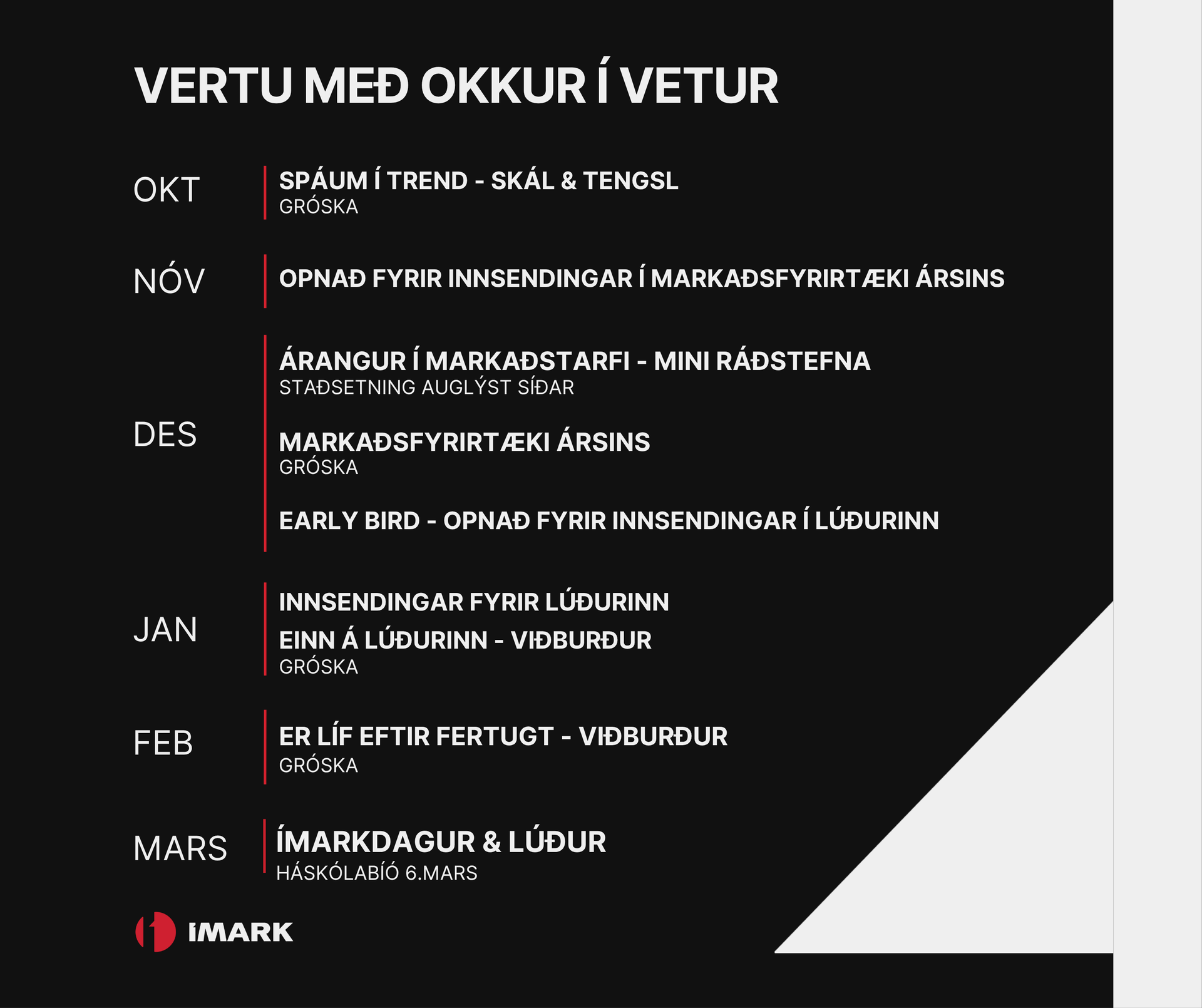 ÍMARK býður upp á fjölbreytta dagskrá fram á næsta vor þar sem við tengjum saman tengslanet, faglega umræðu og innblástur í markaðsmálum.